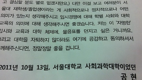 [소박한 이슈/교육/문화] - 서울대생 자퇴선언, 지나친 입시위주 교육의 결과