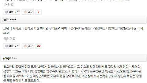 요즘 사람들이 자주 말하는 '아이들이 무서워서 밤거리를 걸어 다니지 못하겠다.'라는 말이 무엇을 뜻하겠는가? 일탈행위를 일삼는 아이들의 행위는 이미 그 수준이 몇 성인 범죄자가 꼬리 내리고 도망갈 정도이다. 점점 악화만 되어가는 청소년 범죄. 그 원인이 어릴 때부터 계속되었던 '어리니까 그럴 수도 있지.'라는 교육의 결과물은 아닐까?
