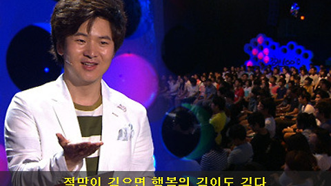 "요즘 세상은 정말 많이 힘듭니다. 많은 사람이 정말 힘들게 살고 있고, 많은 사람이 죽음을 선택하기도 하고, 많은 가정이 깨지고 있는데, 여러분이 그분들에게 작지만… 정말 따뜻한 은인이 돼주신다면, 저같이 이렇게 다시 재기에 성공해서 여러분 앞에서 다시 웃으며 이야기할 수 있게… 은인이 될 수 있었으면 합니다."