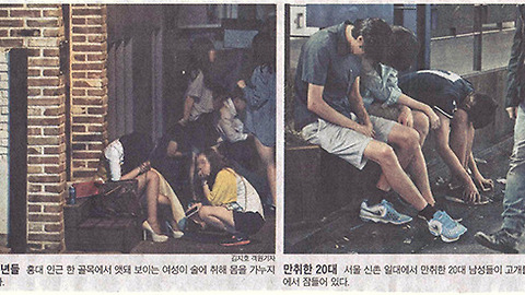 많은 사람이 경악했던 성폭행 사건이나 여러 살인 사건들은 반 이상은 '음주' 때문이었다. 그 음주의 시작은 바로 대학부터, 아니, 대학교에 들어가기도 전부터 시작된다. 위 자료 이미지는 청소년들과 대학생이 소위 말하는 '술에 쩔어 있는 상태'로 거리에 있는 모습인데, 많은 사람이 살인범이나 도덕적으로 해서는 안 될 범죄를 저지른 범죄자들을 손가락질하며 "세상 말세다."고 말하지만… 무엇보다도 저 모습이 바로 "세상 말세다."고 말할 수 있는 모습이라고 난 생각한다.