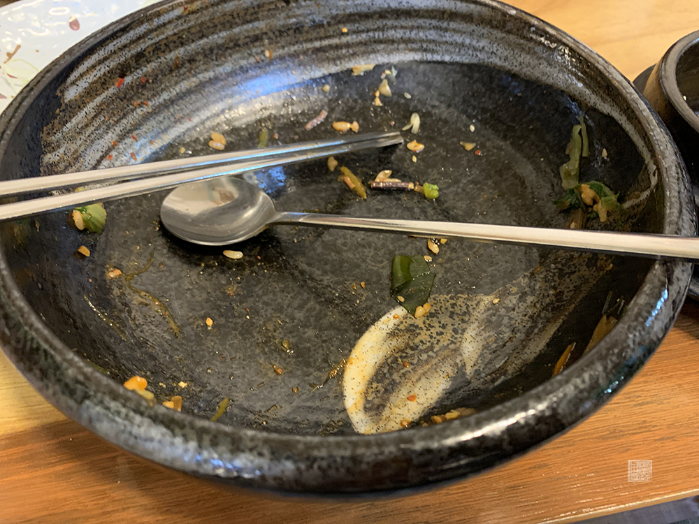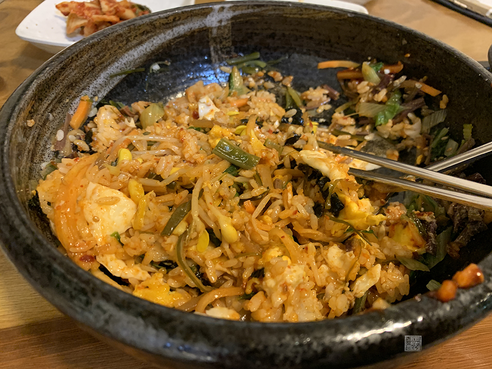함께 먹을 수 있는 된장찌개 또한 비빔밥의 맛을 돋우는 역할을 톡톡히 하고 있다. 역시 한국 사람은 된장찌개에 밥 한 끼를 배부르게 먹어야 제대로 한 끼 식사를 했다는 느낌이지 않을까? 뭐, 어디까지 내가 그렇다는 거다. 나는 된장찌개 혹은 김치찌개와 밥 한 끼를 먹는 걸 무엇보다 좋아하기 때문에 항상 이런 형식의 구성을 선호한다.