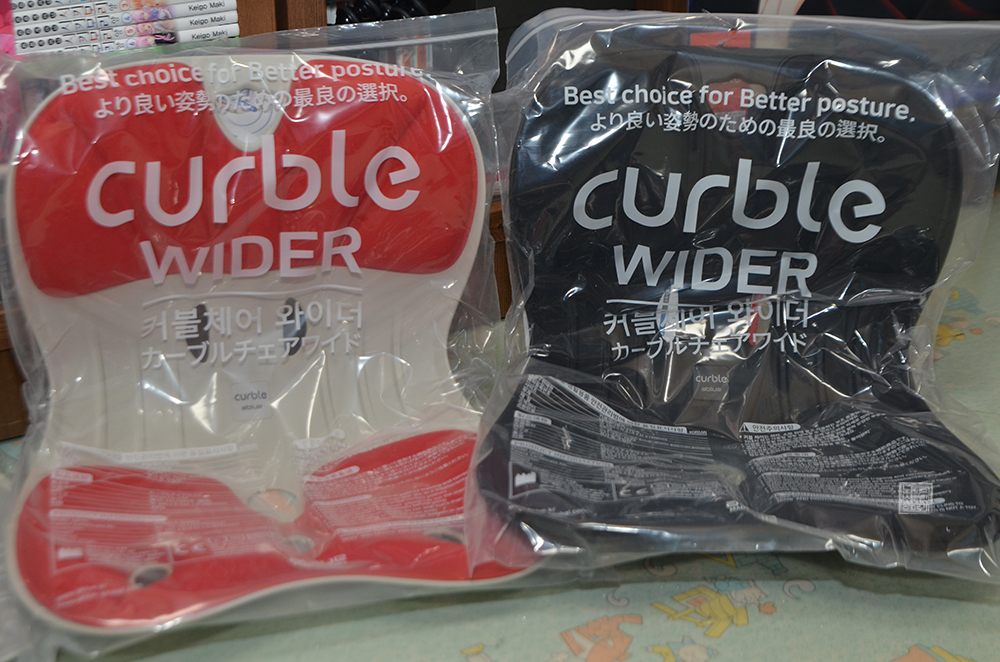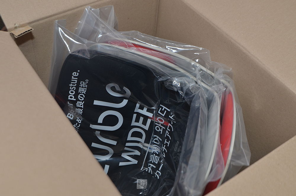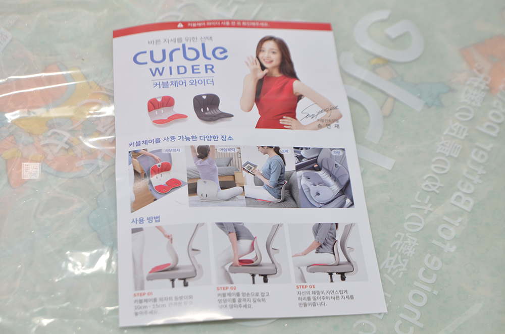 바른 자세를 위한 메커니즘이라는 문구가 새겨진 커블 체어 와이더는 국내 판매만 아니라 일본 등 해외에서도 판매를 하는 건지 영어와 일본어로 제품명과 소개글이 적혀 있었다. 그리고 2+1 주문이 가능해도 3가지를 모두 같은 색상으로 주문할 수는 없기 때문에 레드, 블랙, 그레이 이렇게 총 세 가지 색상으로 제품을 받아보았다.