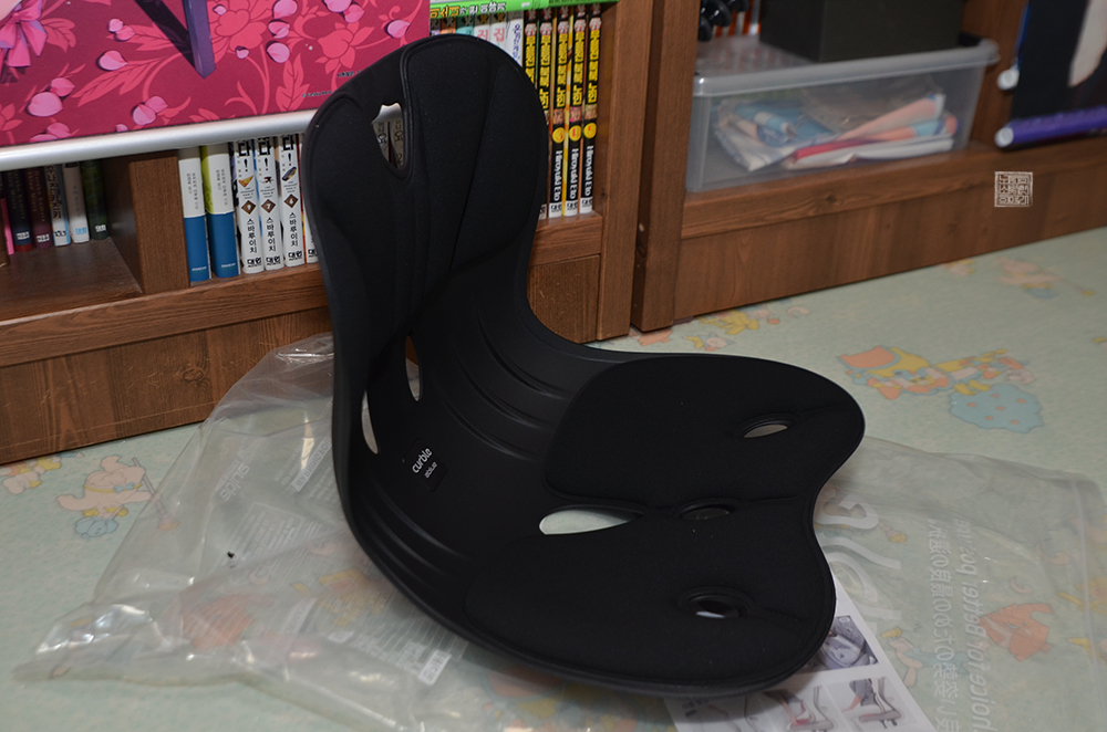 커블 체어의 모습을 본다면 위와 같은 모습이다. 평소 우리가 좌식 테이블을 이용할 때마다 곁에 두는 등받이 좌식 의자와 크게 달라 보이지 않으면서도 여러 부분에서 신체 곡선에 맞는 디자인을 갖고 있다는 걸 알 수 있었다. 무엇보다 와이드 모델이 아니라 일반 모델을 주문했으면 여러모로 내 몸과 좀 안 맞을 뻔했다.