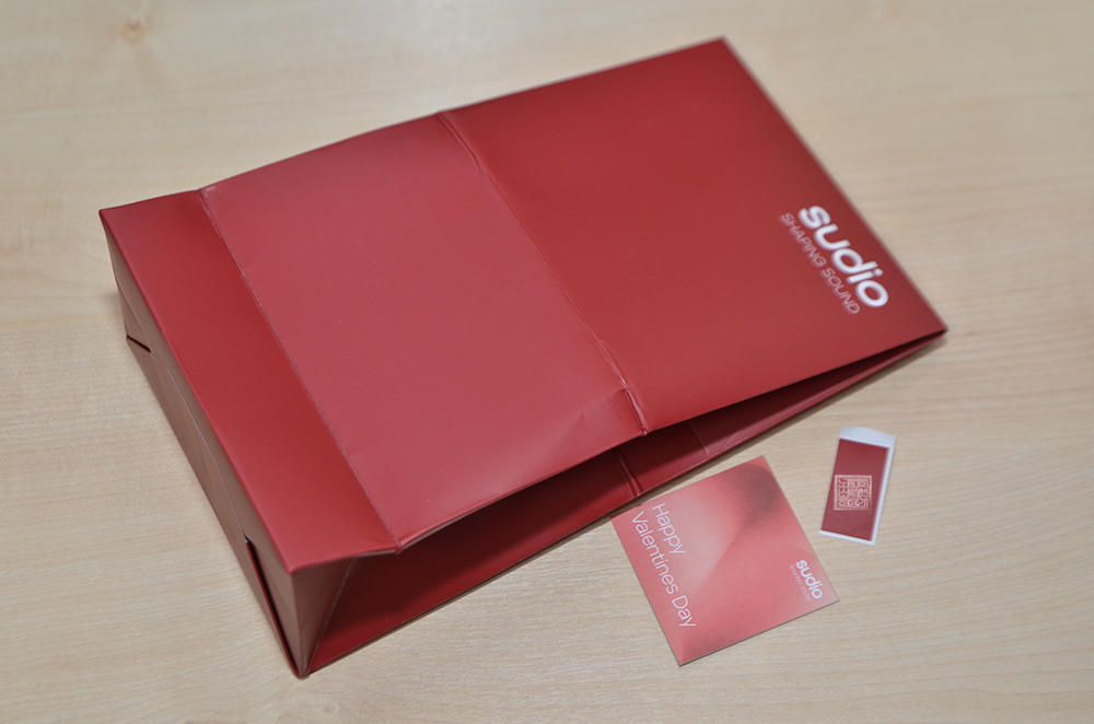 다 펼쳐보면 이런 느낌의 종이가방이 되는데, 여기에 수디오 니오 제품을 담아서 밸런타인데이를 맞아 선물한다면 아주 멋진 선물이 되지 않을까 싶다. 다가온 졸업식 시즌을 맞아 졸업하게 될 아이들이나 친구들에게 준다면 아주 기뻐서 환호성을 지르지 않을까 싶다. 가격 경쟁력이 뛰어날 뿐만 아니라 디자인과 기능까지 모두 출중한 무선 이어폰이니까.