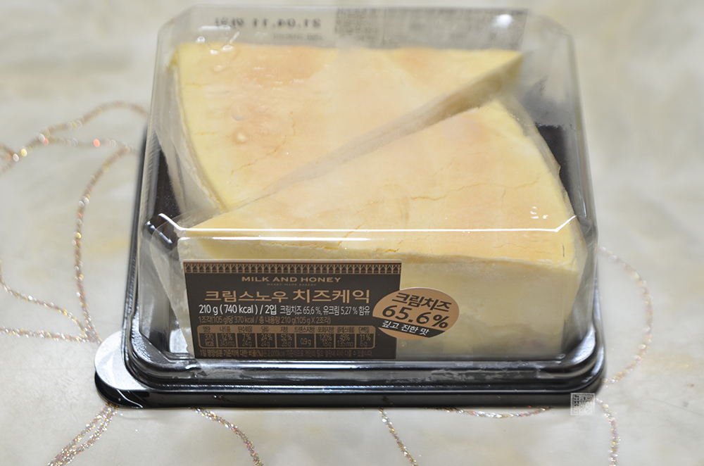 총 두 개가 들어가 있어서 한 개는 동생이 먹기로 하고 한 개는 내가 먹기로 했다. 평소 치즈 케익을 좋아하기 때문에 가격 대비 어떨지 궁금했다. 처음 이 상품을 꺼낸 곳이 냉동식품 코너라고 생각했었기 때문에(옆 옆 칸에 냉동 치킨 같은 제품이 들어가 있었다) 이걸 냉동실에 넣어두는 바람에 조금 밖에서 녹여야 했다. (케익은 냉장 보관;;)