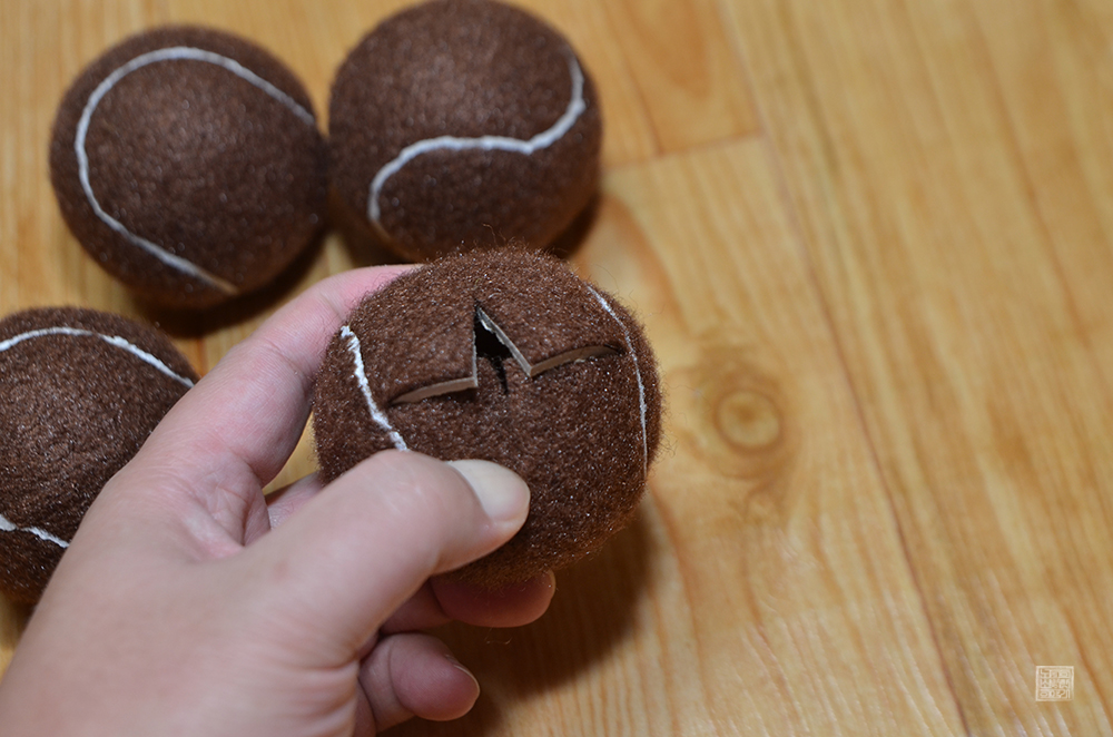 총 16개가 들어가 있는 코멧 테니스공 가구발 커버는 내부를 살펴보면 위 사진처럼 가구 발에 끼울 수 있는 홈이 있다. 테니스공의 모습 자체도 연두색 테니스공이 아니라 어떤 가구 발에 끼우더라고 큰 위화감이 없는 브라운 색상이라 이게 괜스레 마음에 들었다. 연두색 테니스공 커버를 가구 발에 끼우면 왠지 좀 그렇기 때문이다.