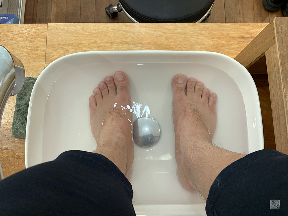 발은 따뜻한 물에 불린 이후 여러 단계에 따라서 각질 제거에 들어가게 된다. 저 드릴이 굉장히 신기했는데, 아픈 것 없이 발에 퀘퀘 묵은 각질이 제거되는 모습을 보는 건 신기했다. 한동안 두텁게 쌓였던 각질의 절반 이상을 이번에 제거할 수 있었는데, 완벽히 각질을 제거하고 관리하기 위해서는 몇 차례 더 받을 필요가 있었다.