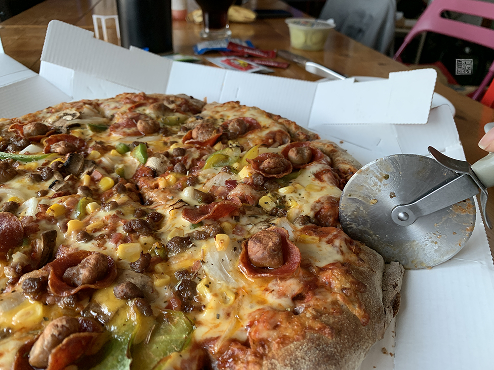 하지만 전체적으로 피자를 좋아하는 사람들이 크게 호불호 나누어지지 않고 먹을 수 있는 피자라고 생각한다. 보통 이런 피자는 혼자서 먹는 경우가 잘 없기 때문에 친한 사람과 함께 한 판을 나눠 먹으면서 이런저런 이야기를 나누는 재미가 맛에 첨가되어 조금 더 맛있게 피자를 먹을 수 있는 법이다.