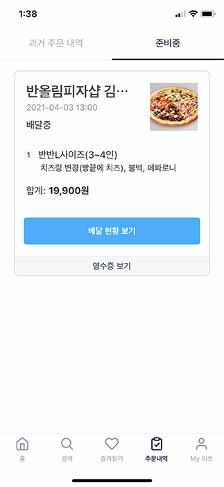 꽤 예전부터 먹어보고 싶었던 피자 브랜드이기도 해서 어렵지 않게 브랜드는 결정할 수 있었다. 단, 문제는 어떤 피자를 시킬지가 관건이었는데, 여러 메뉴를 살펴보다가 반반 메뉴로 동생과 내가 둘 다 만족하면서 먹을 수 있는 페페로니와 불벅으로 구성된 반반 피자를 선택했다.