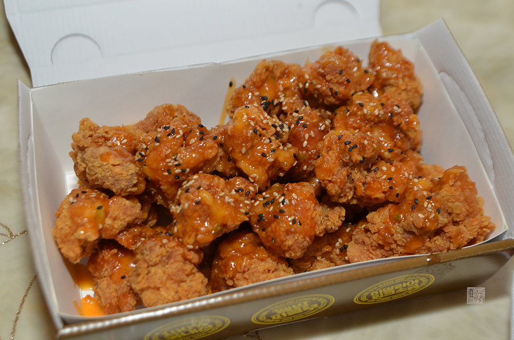 치킨 박스를 여는 순간 바로 코끝으로 매운 향이 났다. '어? 설마 매운 치킨인 건가? 완전 맵슐랭 같은 매운 향인데!?'라며 살짝 당황했다. 동생과 함께 저녁으로 먹기 위해서 주문했기 때문에 매운 것을 먹지 못하는 동생은 먹기가 힘들기 때문이다. 무엇보다 나도 요즘은 매운 것을 점점 잘 먹지 못하고 있다.