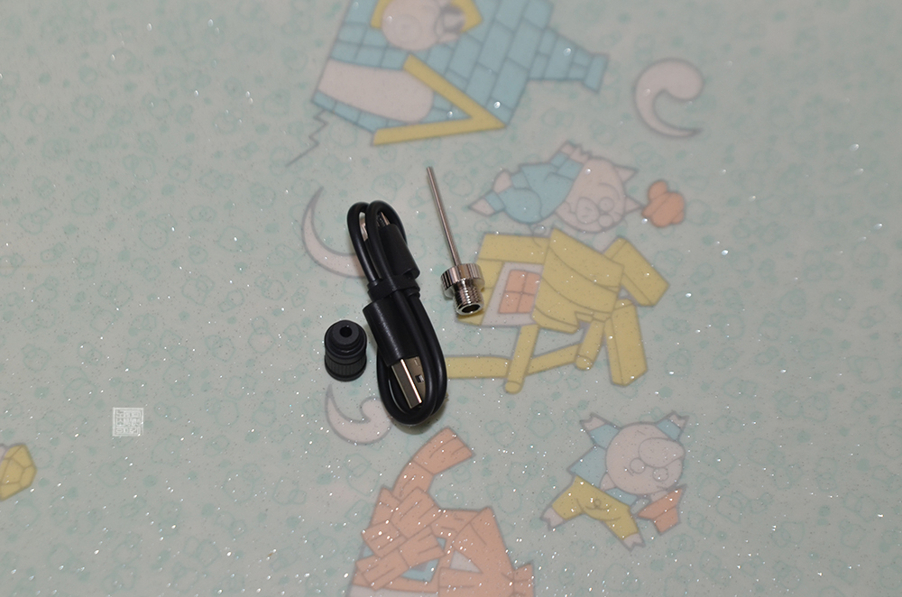 제품을 본다면 위 사진과 같은 형태로 구성되어 있다. 본체, 전용 파우치와 UBS 커넥트, 축구공이나 야구공에 바람을 넣을 때 사용할 수 있는 호환 어댑터(?) 등이다. 뭐, 구성은 단순하지만 사용법도 생각보다 단순해서 어렵지 않게 자전거와 여러 생활 도구에 바람을 넣을 수 있는 구조라고 생각한다.