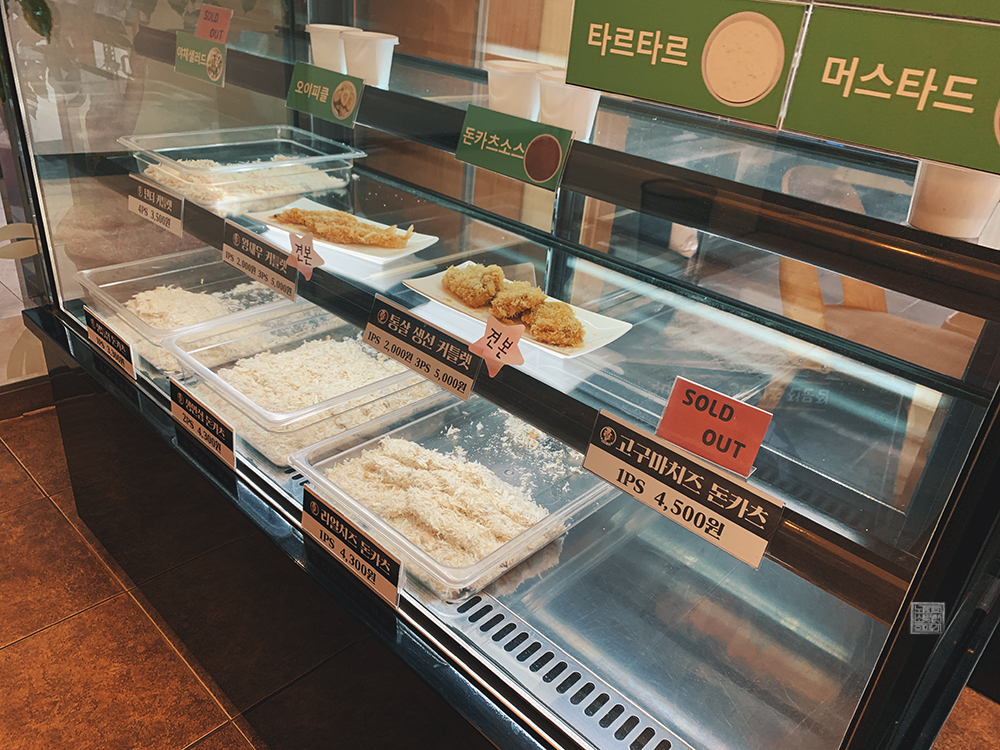 해당 가게에서 판매하는 돈가스는 안심 돈가스(2조각), 등심 돈가스, 치즈 돈가스, 통살 생선 커틀렛, 왕새우 커틀렛, 텐더 커틀렛으로 구성되어 있다. 물론, 각 돈가스마다 개별 포장 주문이 가능하고, 도시락 형태로 주문할 수 있는 세트 메뉴도 존재하기 때문에 선택의 폯이 넓다. 하지만 집에서 밥과 함께 먹을 때는 그냥 돈가스만 개별 주문하면 된다.