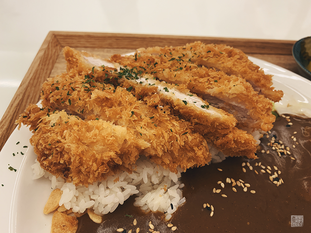 그렇게 먹어본 돈가스의 맛은... 딱 6.900원에 어울리는 맛이었다고 생각한다. 카레가 없으면 수제 등심 돈가스 정식 한 세트의 가격이 4,900원이니 딱 그 정도 가격의 맛을 예상하고 먹으면 실망하지 않을 수 있다. 나는 후기가 워낙 좋았기 때문에 괜스레 기대 거품이 끼인 탓에 살짝 실망할 수밖에 없었다. (쓴웃음)