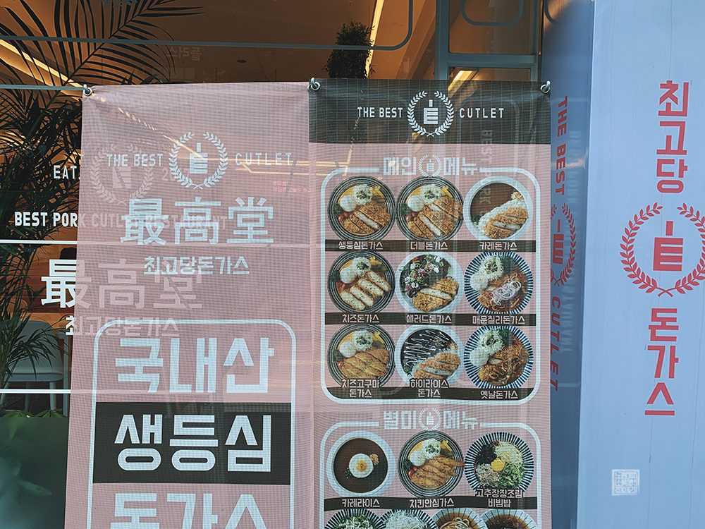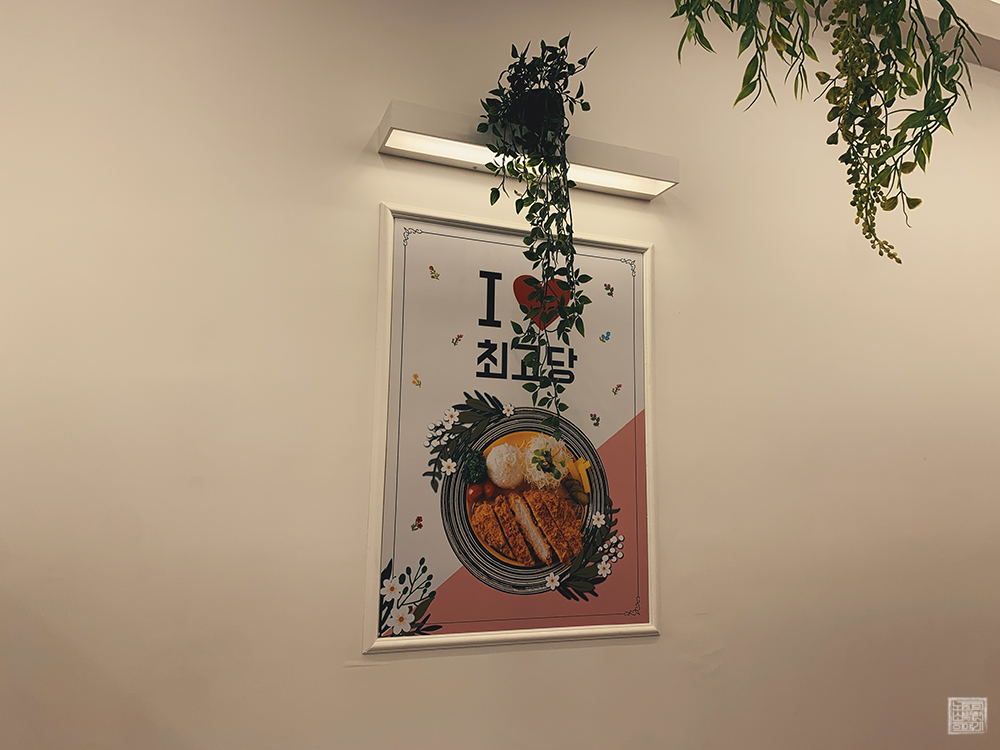 하지만 체크인 시간까지 조금 여유가 있었기 때문에 근처에서 저녁을 먹을까 고민했는데, 지하철에서 내린 이후 양정역 2번 출구에서 올라와 잠시 더위를 식힐 곳을 찾다가 '최고당 돈가스'라는 가게를 만났다. 이 가게는 간판과 외부 인테리어부터 이미 인스타 감성이 충만한 디자인을 갖고 있는 돈가스 집이었다.