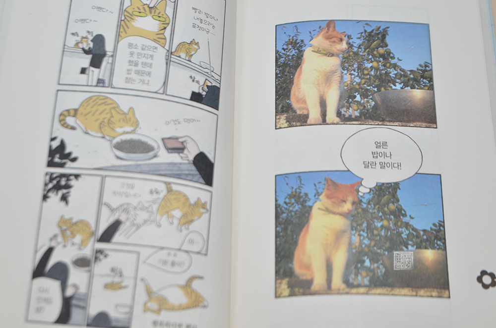 저자가 새로운 고양이를 입양하거나 그런 건 아니고 어디까지 마을에서 자유분방하게 돌아다니는 길고양이들의 이야기다. 사실 어떻게 본다면 반 길고양이 반 집고양이라고 말해도 과언이 아닐 정도로 저자와 저자의 어머니가 주는 밥을 먹기 위해서 고양이들이 틈틈이 집을 찾아온다. 이 정도면 사실 집고양이라고 말해도 과언이 아닐 것 같다.