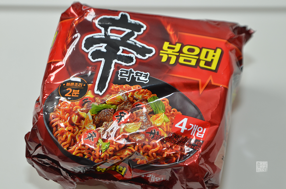 신라면 볶음면은 맵다는 이미지를 보여주기 위해서인지 포장지가 진한 빨강으로 되어 있었다. 딱 보더라도 매워 보이지만 포장지에 첨부된 사진이 너무 맛있게 보여서 또 호기심이 들기도 했다. 항상 포장지에 첨부된 사진은 가공의 이미지라 실제로 끓였을 때 저 정도는 되지 않겠지만, 나름 맛있게 먹을 수 있겠다는 기대감은 지울 수 없었다.
