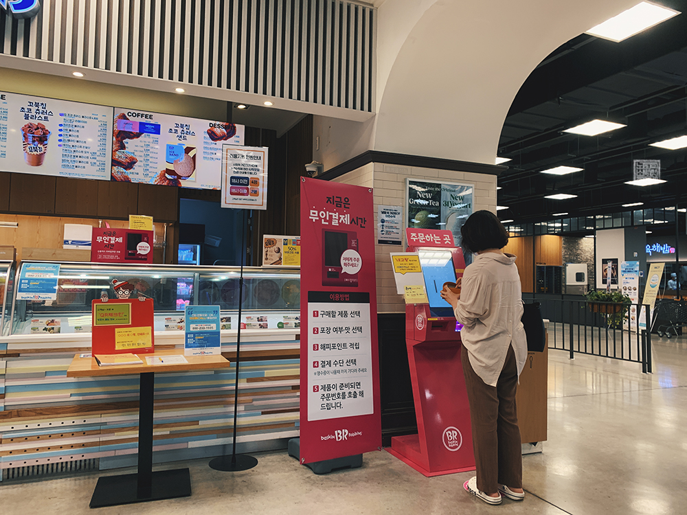 내가 찾은 곳은 김해 이마트에 위치한 배스킨라빈스로, 포스기 옆을 본다면 <네고왕> 행사 기간 동안 음료는 아메리카노밖에 제공하지 않는다는 메시지가 붙어 있었다. 그리고 <네고왕> 덕분인지 사람들이 제법 많아서 포스기로 주문하는 과정을 사진으로 미처 담지 못했다. 주문할 때도 <네고왕> 메뉴는 한정되어 있어 살짝 당황하기도 했다.