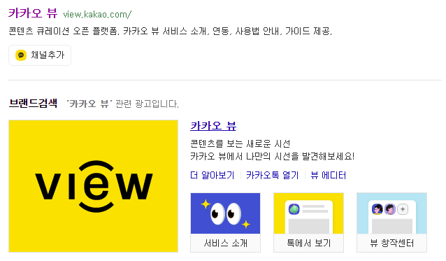 해당 서비스는 다음 검색창에서 '카카오 뷰'를 검색해보면 가이드부터 시작해 다양한 정보를 한눈에 알 수 있다.