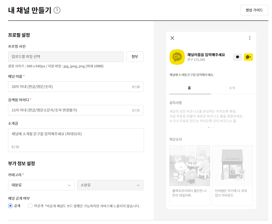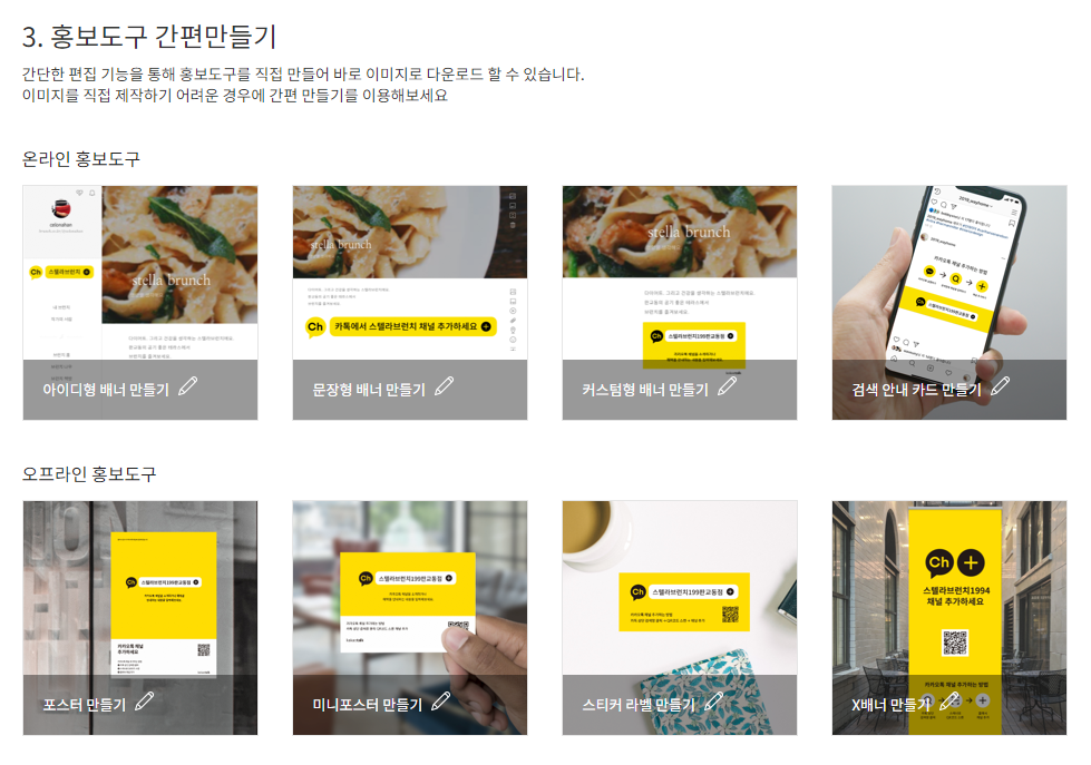 그리고 카카오 뷰는 내가 개설한 채널을 사람들에게 홍보하기 위한 다양한 아이템도 제공하고 있다.