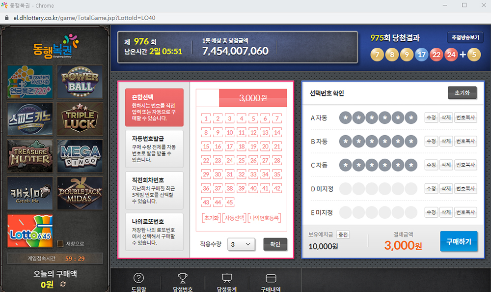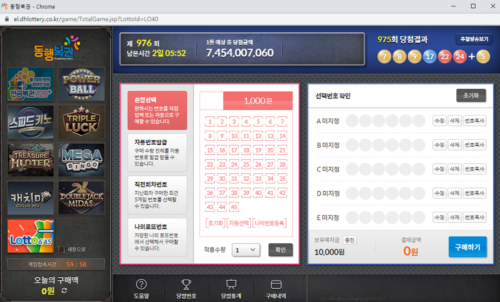 오늘은 이 홈페이지에서 어떻게 복권을 구매할 수 있는지 간단히 정리해보고자 한다.