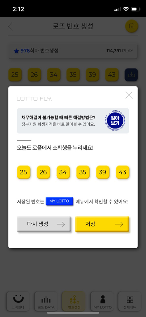 오늘 당신은 제976회 로또 복권을 어디서 구매하였는가? 번호는 자동인가 수동인가? 만약 수동으로 번호를 기입하고 싶은데 특정 조건을 갖춘 번호를 기입하고 싶다면 로또 플라이를 이용해 생성한 번호로 인터넷 복권 판매 사이트에서 로또 복권을 매주 5천 원씩 구매해보도록 하자. 어쩌면 생각지도 못한 행운이 찾아올지도 모른다.