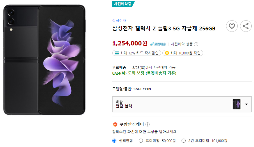 삼성 갤럭시 Z 플립 3 자급제 쿠팡 사전 예약 혜택 정리