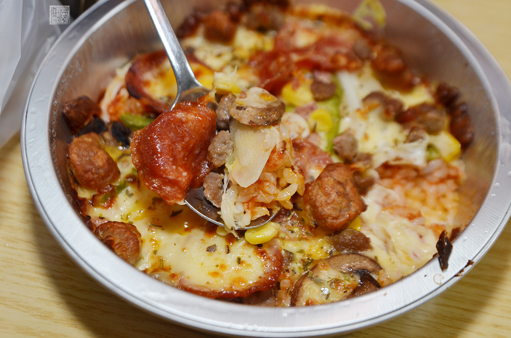 도미노 피자가 야심 차게 내놓은 신 메뉴 피자 라이스볼은 이름 그대로 피자와 쌀밥을 작은 볼에 옮겨서 오븐에 구운 메뉴라고 말할 수 있다. 가장 아래에 갈릭 버터 라이스를 깔아 둔 이후 그 위에 모차렐라 치즈와 피자 토핑을 올려서 조리한 메뉴이기 때문에 솔직히 맛이 없을 수가 없다. 이건 맛이 없으면 안 되는 메뉴다.