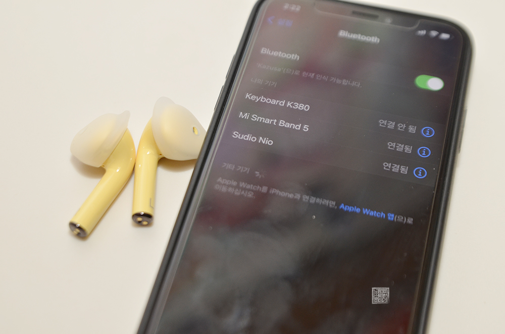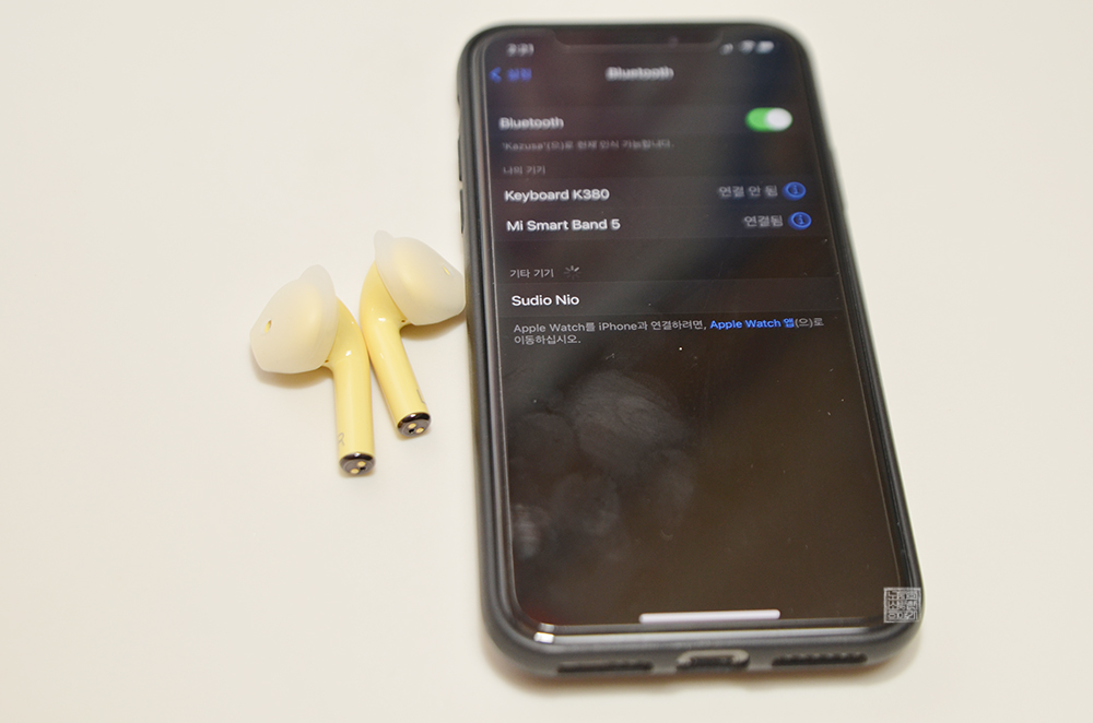 기타 기기 항목에 수디오 니오 제품이 떴을 때 연결을 해주면 큰 문제없이 연결이 된다. 보통 우리가 사용하는 스마트 밴드와 이어폰을 동시에 활용할 수도 있기 때문에 운동을 하면서 내 건강 상태를 체크와 음악 감상을 함께 할 수 있다는 장점도 있다. 역시 선에서 자유로운 무선 이어폰의 자유로운 활용도는 바로 이런 게 매력이다.