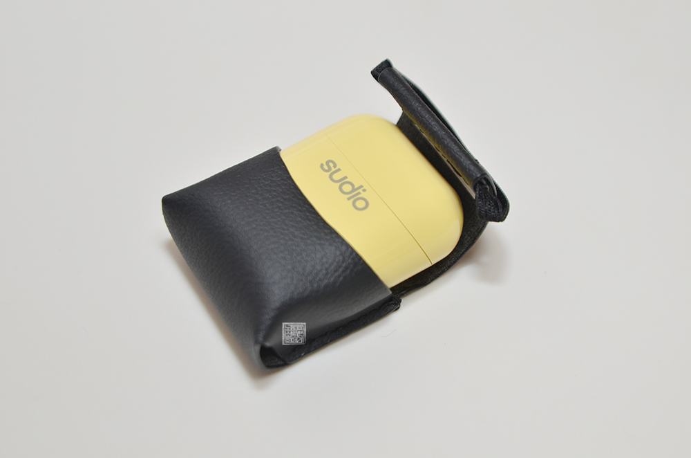 위 사진을 본다면 정말 가죽 케이스가 깔끔하게 수디오 충전 케이스와 제품을 보호한다는 걸 알 수 있다. 해당 가죽 케이스는 내구성이 뛰어난 식물 베이스(사과껍질) 이탈리아산 가죽을 사용했기 때문에 튼튼하고 부드러운 촉감을 제공할 뿐만 아니라 버릴 때도 자연 친화적으로 분해까지 되기 때문에 어떤 가죽 제품보다 훌륭한 제품이었다.