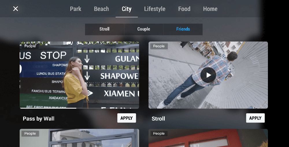 해당 Shot Guides에 포함되어 있는 샘플 영상은 장소, 배경, 상황, 각도에 따라서 다양하게 구성되어 있기 때문에 우리가 평소 짐벌을 이용해 특정 장소에서 특정 인물을 어떻게 촬영할지 참고할 수 있다. 이 기능은 단순히 짐벌을 활용해서 촬영할 때만 아니라 평소 우리가 카메라를 들고 브이로그 영상을 찍을 때도 충분히 공부에 참고할 수 있었다.