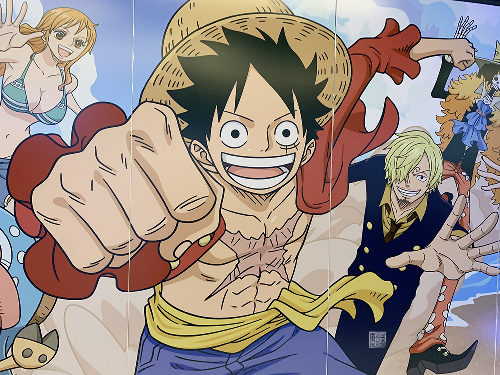 홍대 AK몰 5층에 위치한 Play ONE PIECE는 에스컬레이터를 타고 5층에 내리는 순간부터 '아, 저곳이 거기구나!'라는 걸 알 수 있을 정도로 잘 장식이 되어 있었다. 벽면 한쪽을 본다면 현재 90년대 생 이후라면 누구나 다 <명탐정 코난>, <나루토>, <블리치>와 함께 본 애니메이션 <원피스>에서 볼 수 있는 주인공들의 일러스트가 그려져 있다.