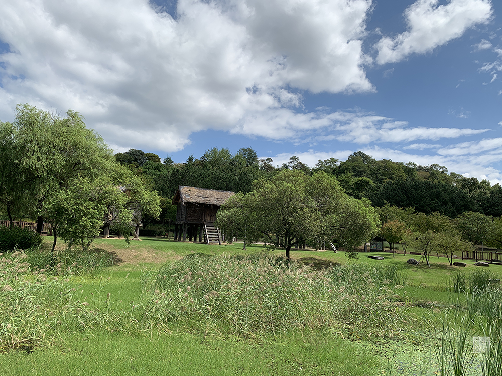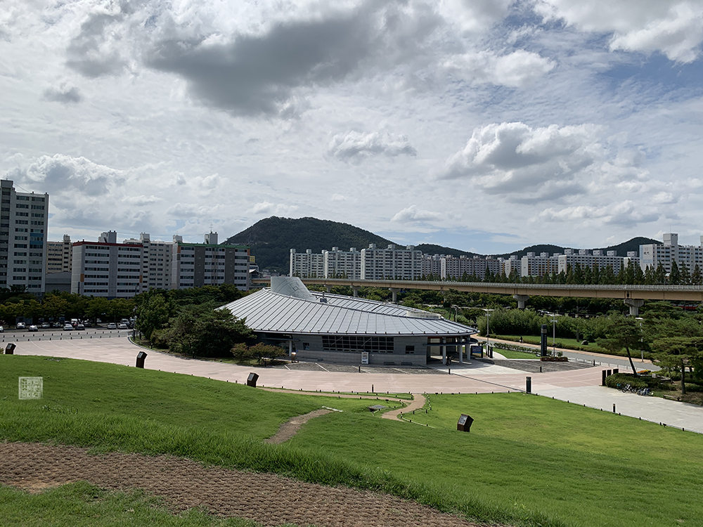 당시에 언덕에 올라서서 내려다볼 수 있었던 대성동 고분 박물관의 모습과 하늘이 너무나 잘 어우러져서 그림 같은 풍경을 만들고 있었다. 하늘이 조금 더 파랬으면 더 예쁠 것 같기도 했지만, 이렇게 흰 구름이 제법 운치 있게 자리를 잡고 있는 모습도 너무나 멋진 모습을 만들어내고 있었다.