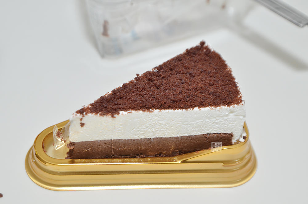 케이크의 모습을 본다면 크게 3층으로 나누어져 있다는 걸 알 수 있다. 가장 아래에는 초콜릿이 베이스로 되어 있는 빵?이 위치해 있고, 그 위에는 치즈로 구성된 층이 있어 치즈가 가지고 있는 느끼한 맛을 느낄 수가 있다. 그리고 가장 위에는 초콜릿 가루가 티라미수처럼 뿌려져 있어서 사실상 티라미수를 먹는 듯한 느낌도 있었다.