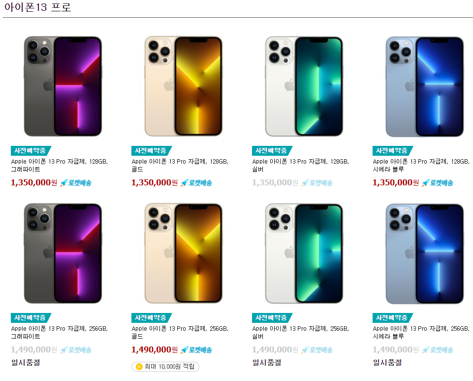 ▲ 눈보다 빨랐던 아이폰13pro 일시품절