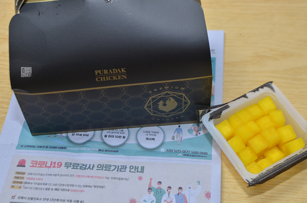 지난번에도 이 이야기를 했던 것 같은데, 부디 푸라닭에서 해당 부직포 가방 대신 조금 더 친환경적이라고 말할 수 있는 코팅 처리되지 않은 종이가방 혹은 리사이클링 종이가방을 제작해서 치킨 박스와 무 등을 담아서 포장할 수 있었으면 하는 바람이다. 부직포 가방은 겉은 보기 좋아도 속은 실속이 너무 없었다.