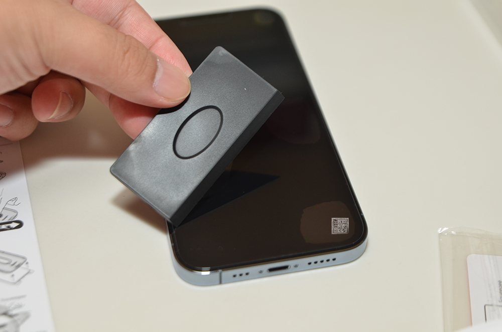 해당 도구를 이용해서 보호 필름에 남은 기포를 제거해주면 깔끔하게 보호 필름 부착이 끝난다. 그렇다. 끝나야 하는데 처음 내가 강화유리 보호 필름을 붙였을 때는 기포가 잘 빠지지도 않았을 뿐만 아니라 기포가 빠져도 거기에 흔적이 남으면서 굉장히 보기 싫었다.