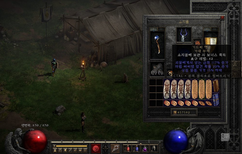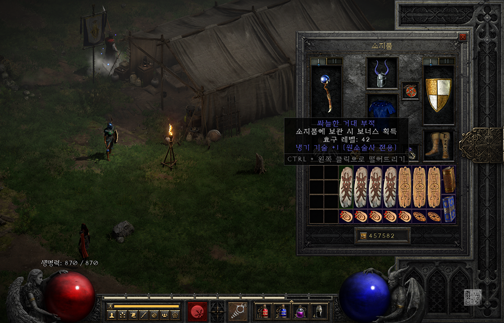 차후에 다시금 면죄를 만들게 된다면 한번 더 초기화를 해서 냉기 주문만 찍을 생각인데… 그냥 이대로 사용해도 극오브 블리자드 소서리스를 활용해서 냉기 면역 몬스터를 만나지 않는 곳에서 앵벌이나 사냥은 충분히 가능할 것 같았다. 어차피 앵벌은 굳이 헬만 고집할 것이 아니라 나이트(악몽) 난이도에서 해도 생각보다 나쁘지 않기 때문이다.