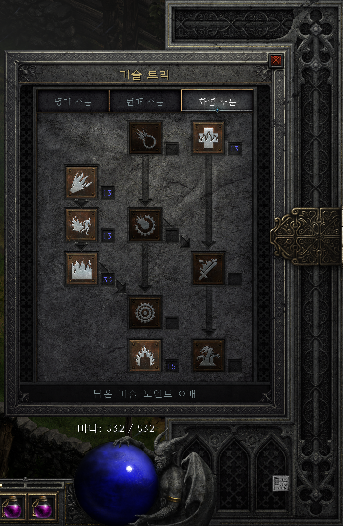 디아블로2 원활한 앵벌을 위한 불벽 소서 스킬트리 구성법