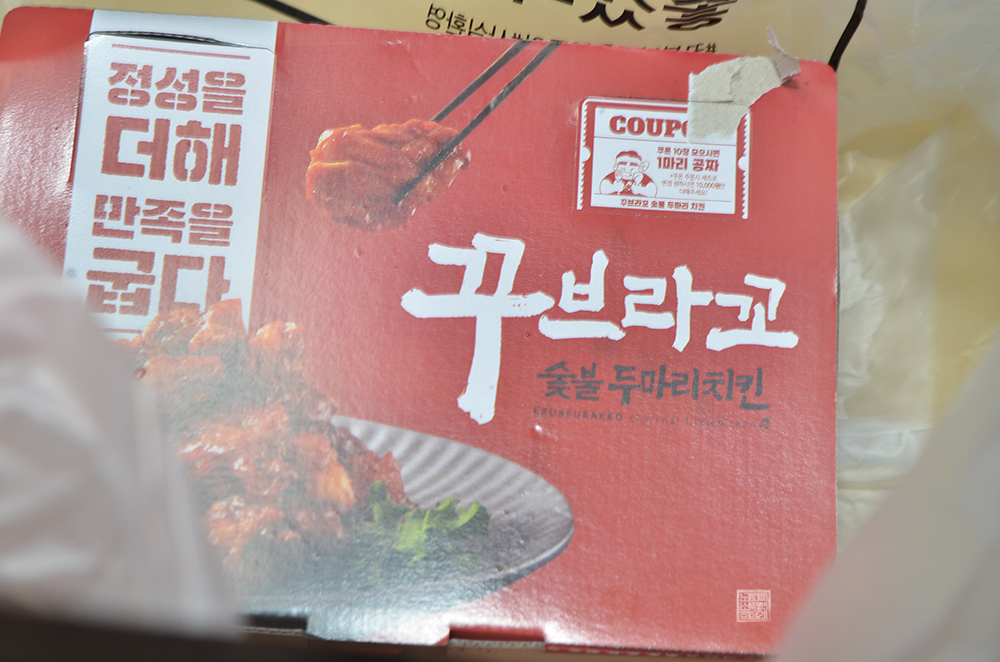그 당시에는 잘 몰랐는데 <꾸브라꼬 숯불 두 마리 치킨>은 SBS 예능 프로그램 <미운 오리 새끼>에서 김종국 외 출연진이 맛있게 먹으면서 화제가 된 치킨이라고 한다. 무엇보다 이름에서 알 수 있듯이 해당 브랜드에서 판매하는 치킨은 튀겨서 오는 치킨이 아니라 숯불에 구워서 오는 치킨이라 칼로리도 낫은 편에 속하는 치킨이었다.