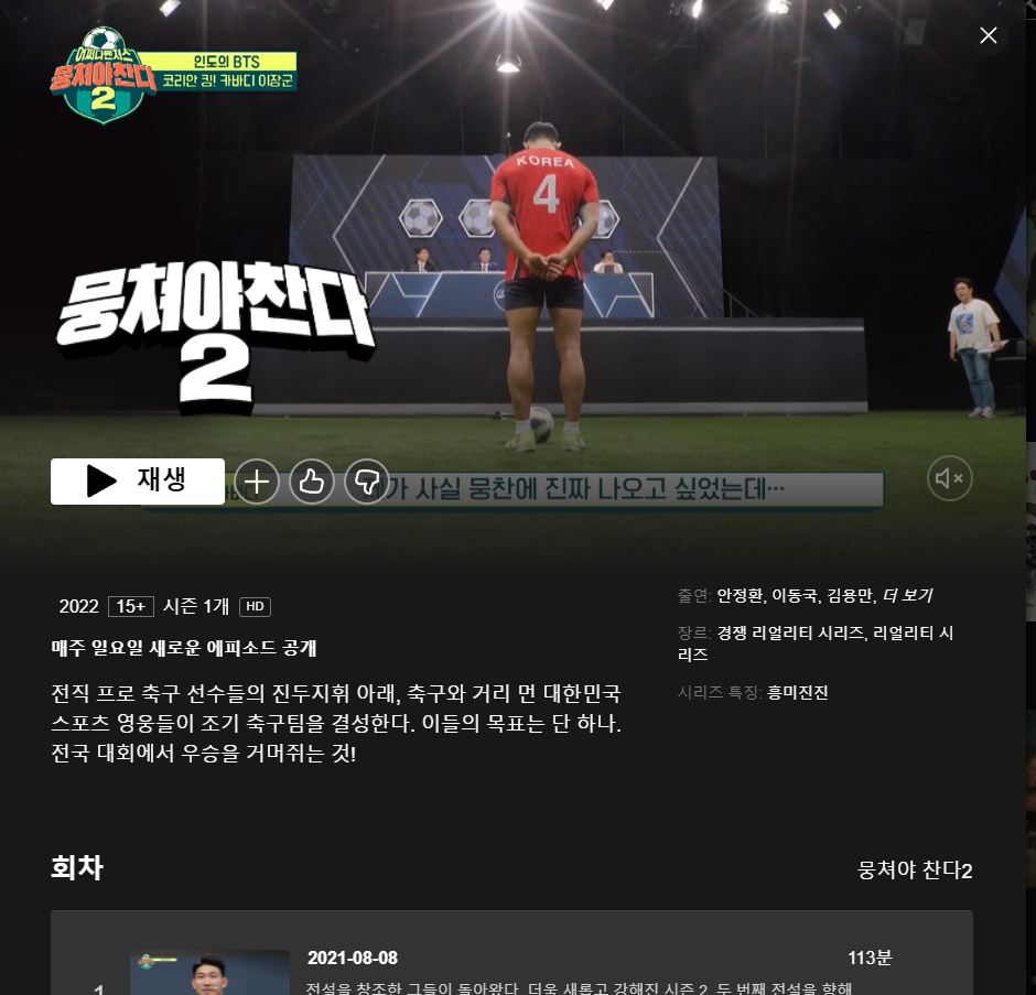 ▲ 넷플릭스에 등록된 뭉쳐야 찬다2