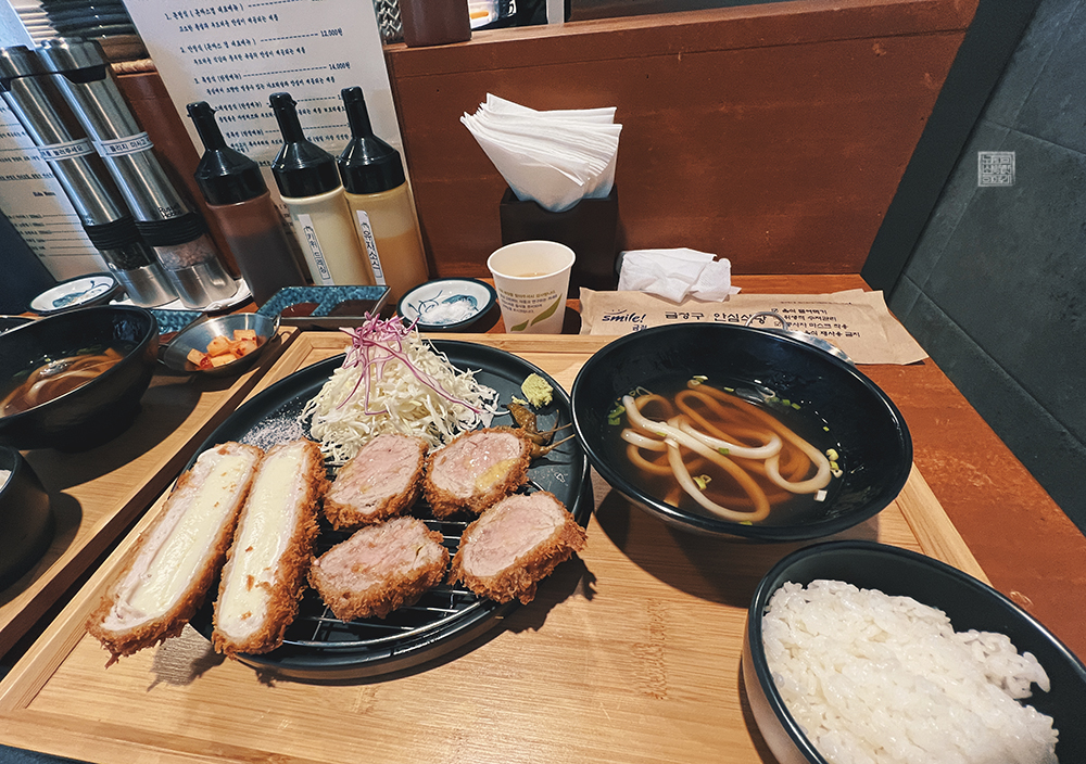 치즈 돈까스는 치즈가 충분히 들어가 있었기 때문에 나무랄 곳이 없었고, 안심 돈까스도 바삭한 돈까스의 튀김옷과 촉촉한 안심이 제대로 조화를 이루고 있었기 때문에 맛있게 먹을 수 있었다. 역시 돈까스는 냉동식품이 아니라 바로 눈앞에서 조리되어 나온 따뜻한 수제 돈까스가 진짜 맛있는 돈까스라는 것을 다시 한번 느낄 수 있었다.
