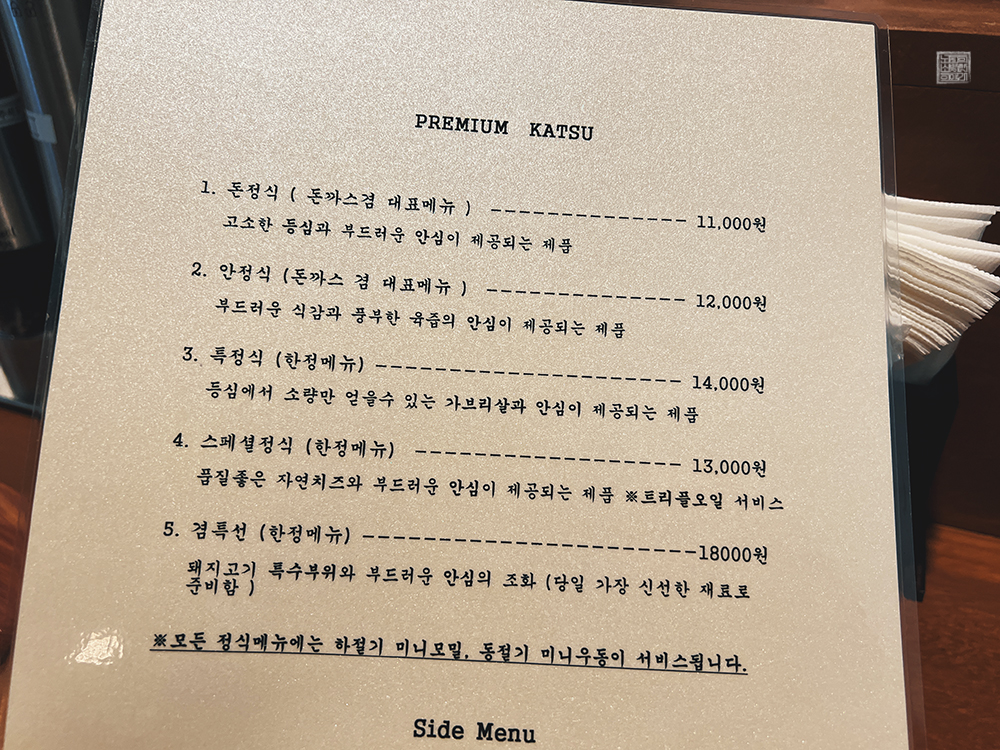 ▲ 돈까스 겸의 메뉴판