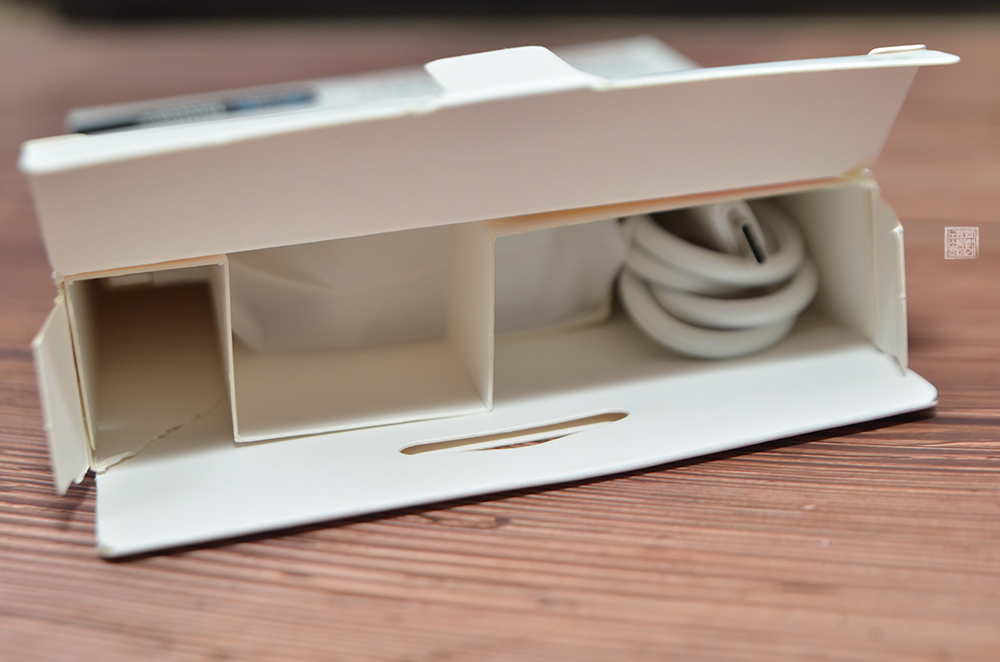 한 개에 약 4만 원이 하는 고가이기는 해도 들어가 있느 건 충전 어댑터와 케이블 딱 두 개뿐인 단순한 구성이었다. 하지만 척 보기에도 케이블은 초고속 충전을 지원하는 만큼 두터운 케이블로 되어 있었고, 어댑터 또한 4~5천 원짜리 제품과 비교조차 하지 않을 정도로 깔끔하고 견고한 디자인으로 되어 있었다.