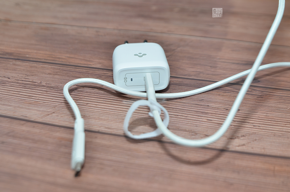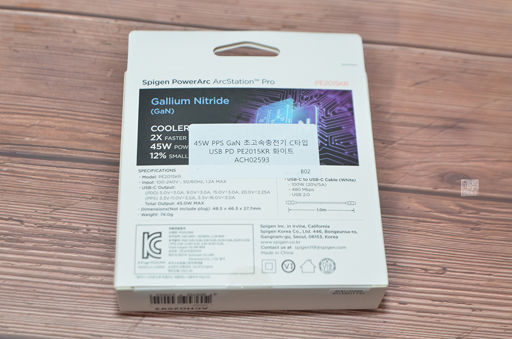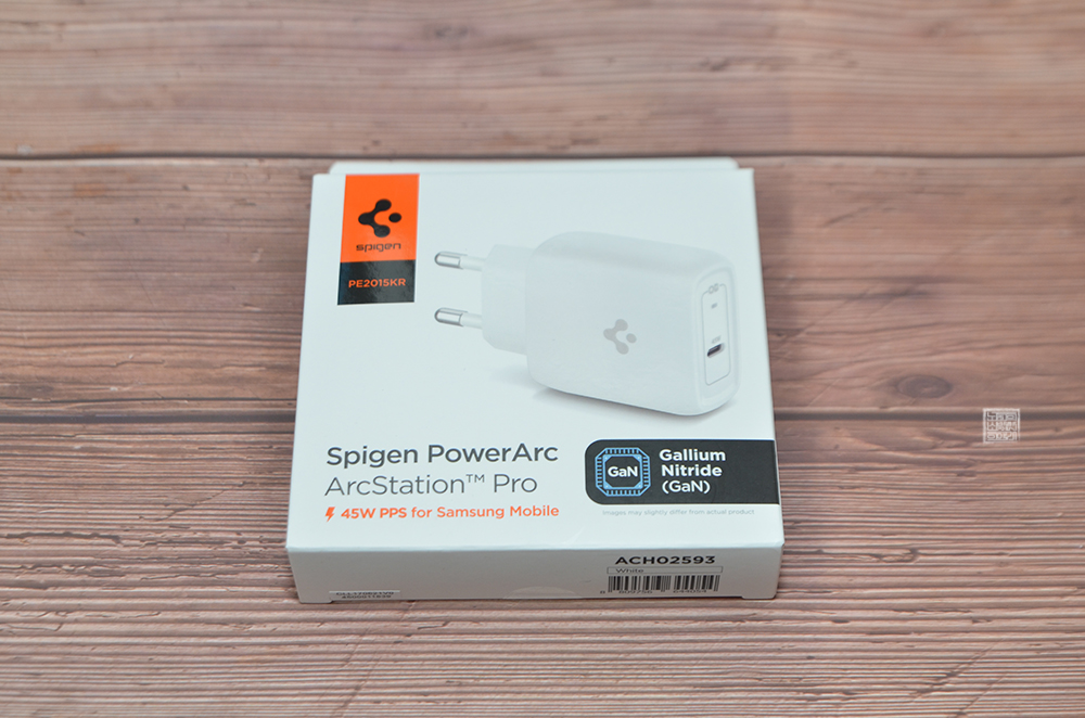 해당 충전기는 USB 코드와 C 타입 코드를 가진 일반적인 케이블과 연결되는 충전기가 아니라 오직 C 타입 코드로 연결이 되는 슈피겐 45W PPS GaN 초고속 충전기였다.