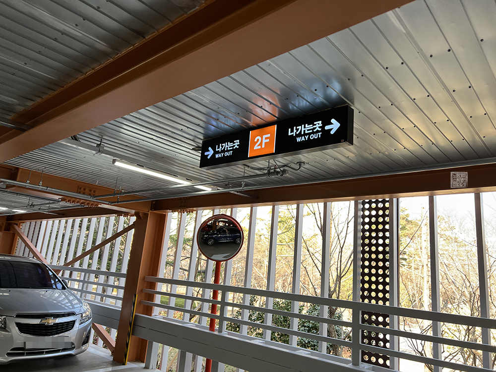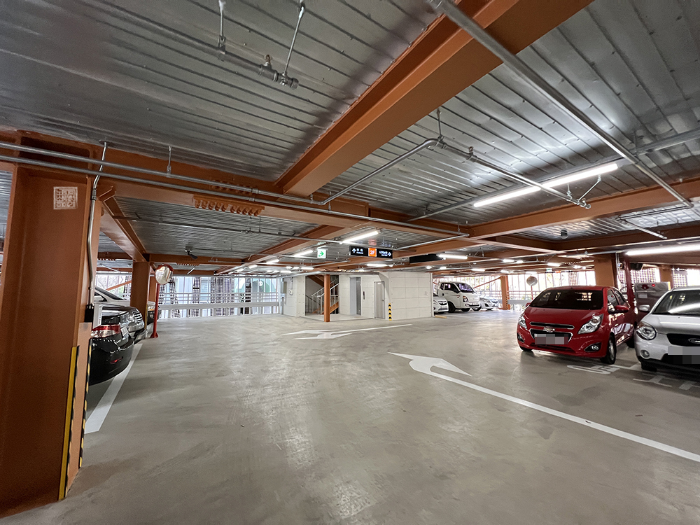 대충 세어봤을 때 한 층에 경차를 포함해 15~18대까지 수용이 가능해 보였는데, 해당 주차장은 이중 주차를 엄격히 금지하고 있으니(이중 주차를 할 경우 차량 진입이나 진출이 어려워진다) 주의하도록 하자. 지금은 아직 임시 운영이라 주차 금액이 무료로 책정되어 있지만, 차후에는 유료로 전환되어 일정 금액이 부가될 것으로 보인다.