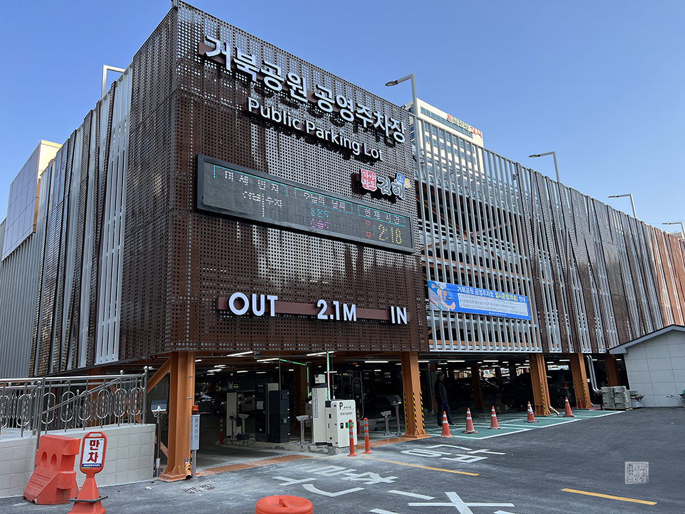 언제 주차장이 완성될지 알 수 없었는데, 몇 주 전에 내외동 사무소에 일이 있어 찾았을 때 드디어 새로운 주자창이 완성되어 있는 모습을 확인할 수 있었다. 이번에 새롭게 지어진 내외동 사무소의 주차장은 '거북공원 공영주차장'이라는 이름으로 최대 3층까지 주차를 할 수 있도록 세워져 있었다.