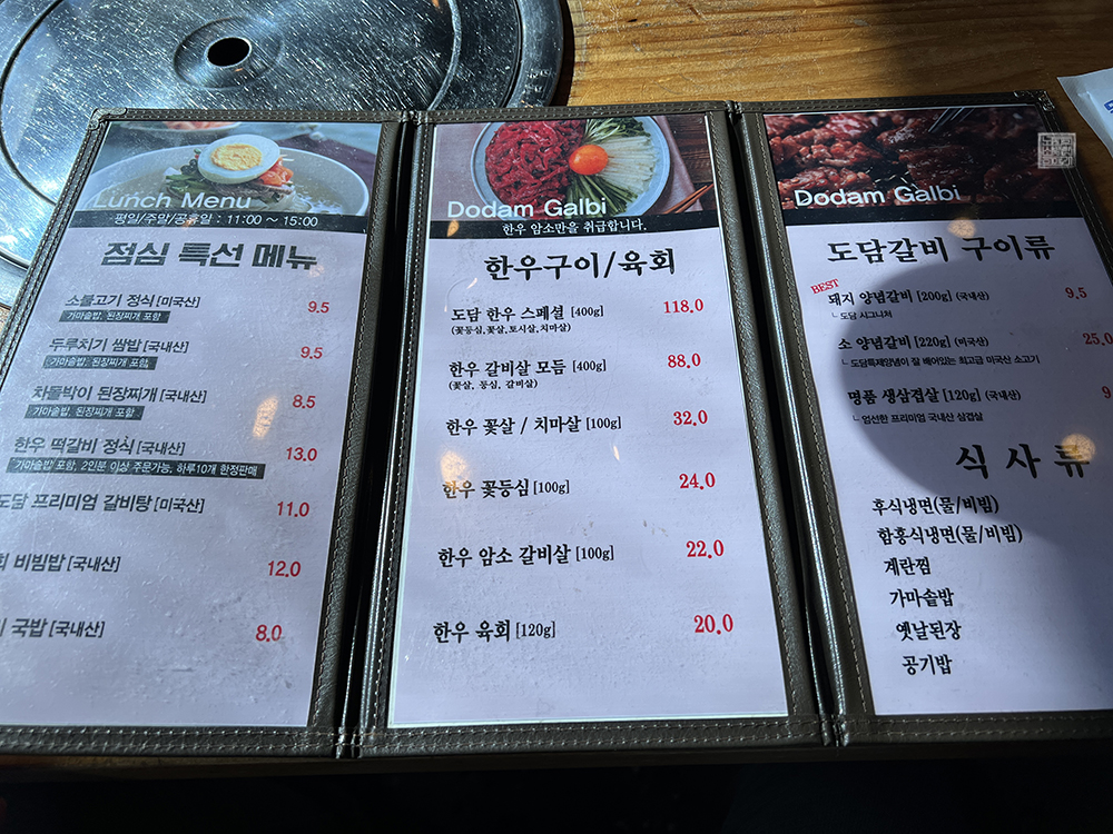 ▲ 수제갈비 도담의 메뉴표