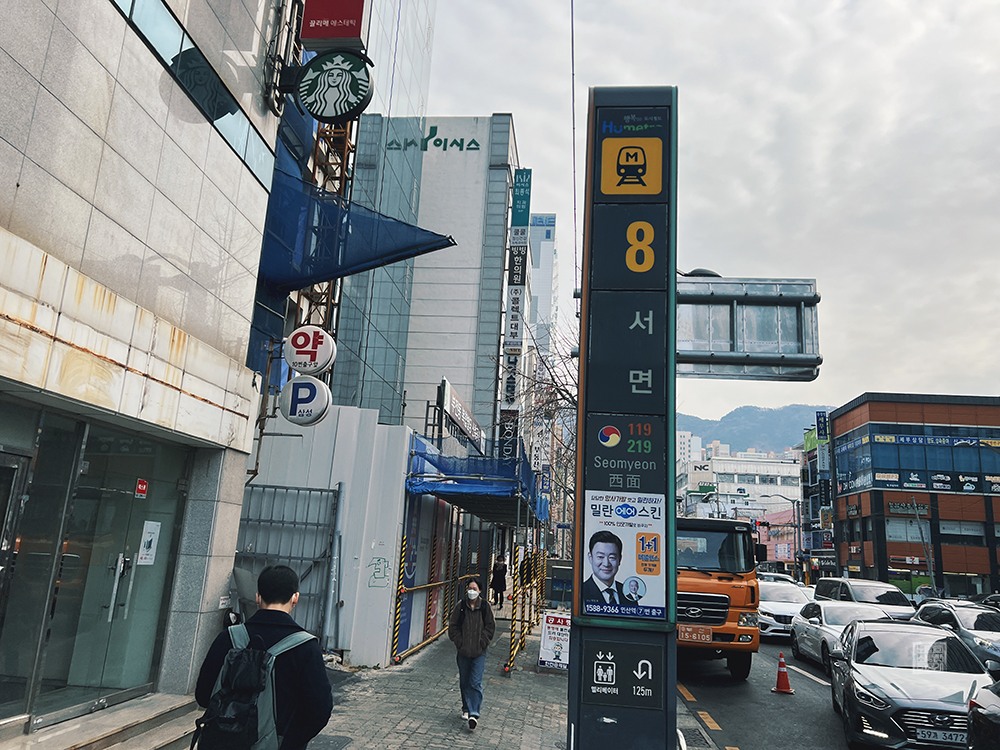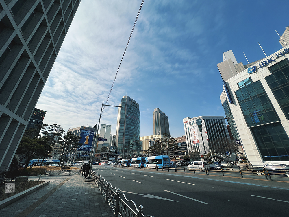 8번 출구를 중심으로 적당히 한 바퀴 걸으면서 산책을 하다 보니 시간이 제법 흐르기도 했고, 위 사진에서 볼 수 있듯이 파란 하늘을 배경으로 한 부산 서면의 모습은 스마트폰으로 촬영할 수밖에 없는 매력이 있기도 했다. 역시 아이폰 13 프로의 광각 렌즈는 일상에서 볼 수 있는 눈부신 풍경을 찍는 데에 가장 탁월한 렌즈이지 않을까 싶다.