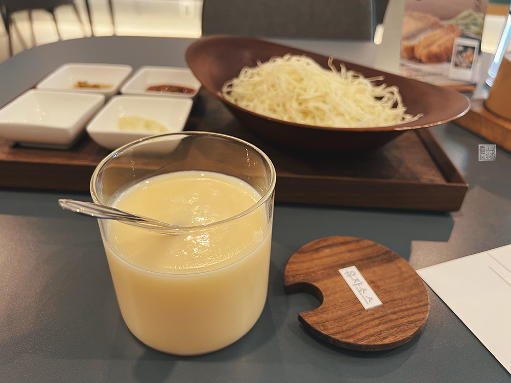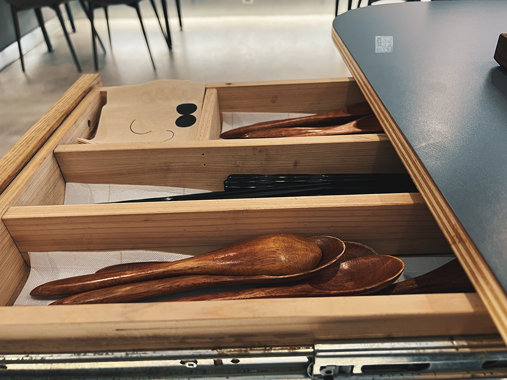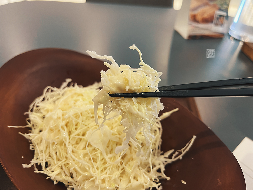 기리는 메뉴를 하나 주문하고 나면 항상 위 사진처럼 애피타이저로 먹을 수 있는, 혹은 차후에 메인 메뉴가 도착한다면 함께 먹을 수 있는 양배추 샐러드와 함께 정말 작게 담긴 밑반찬 세 가지를 받아볼 수 있다. 그리고 수저 세트는 테이블 옆에 달린 수저통을 열면 꺼낼 수 있는데… 개별 포장이 되지 않은 점은 아쉬웠다.