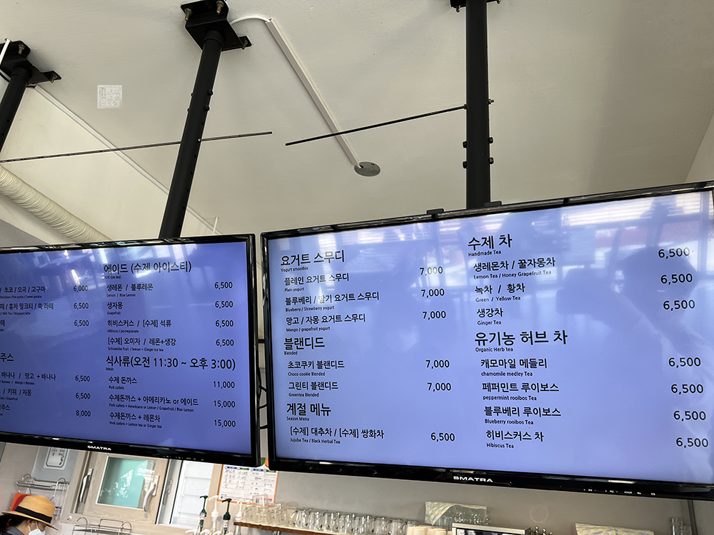 식사류를 판매한다고 해도 역시 카페다 보니까 식사류보다는 카페에 걸맞은 메뉴를 주문해서 먹는 게 최선이지 않을까 싶다. 나는 당시에 수제 돈까스를 다 먹은 이후에 마실 게 물밖에 없다 보니 어머니와 이모가 자몽차를 마시는 동안 그냥 있기도 그래서 딸기 요거트 스무디를 한 개 주문해서 마시기로 했다.